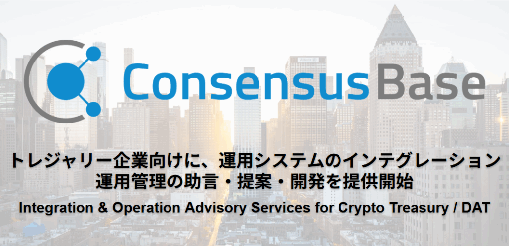 コンセンサス・ベイスが暗号資産保有企業(トレジャリー企業/DAT)向けに、運用システムのインテグレーションおよび運用管理の助言・提案・開発を提供開始
