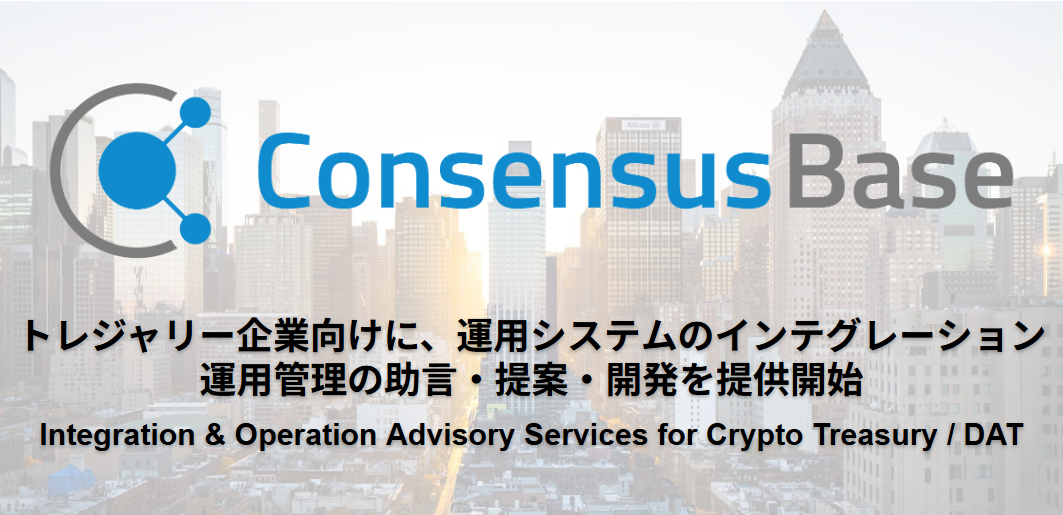 コンセンサス・ベイスが暗号資産保有企業(トレジャリー企業/DAT)向けに、運用システムのインテグレーションおよび運用管理の助言・提案・開発を提供開始
